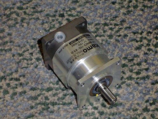 Ball reducer (3/20/2010) Kamoseiko BRN23-15G ball reducer, will reduce output of a 1000DC servo motor driving the A-axis. NEMA23 mount, 15:1 ratio, zero backlash, 1/4" input shaft 3/8" output shaft. |