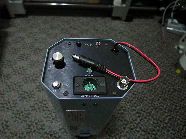 Thermal Imager (7/06/2013) Power switch, video out, brightness control, and pole switch. The pole switch repolarizes pyroelectric crystal if it becomes depolarized by looking at a very hot object or during storage. Camera should be left on for about 45min to heat up before pole system will work properly.
