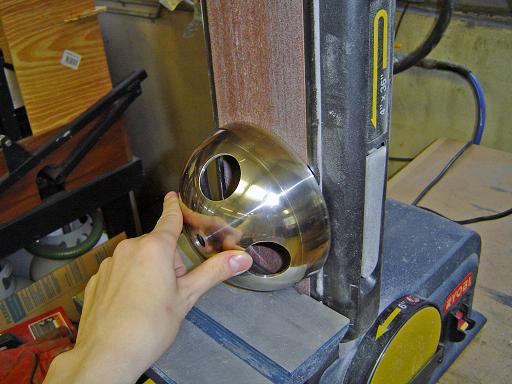 | Hemisphere side polishing (5/24/2007) Hemisphere side area that was sanded on the belt sander is then polished to 600 grit. |